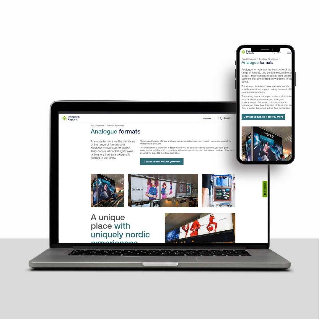 I led the redesign of Swedavia Advertising’s landing page, coordinating with stakeholders and the team to create a more accessible, sales-driven platform. I also crafted user-friendly content to showcase ad spaces across ten airports effectively.